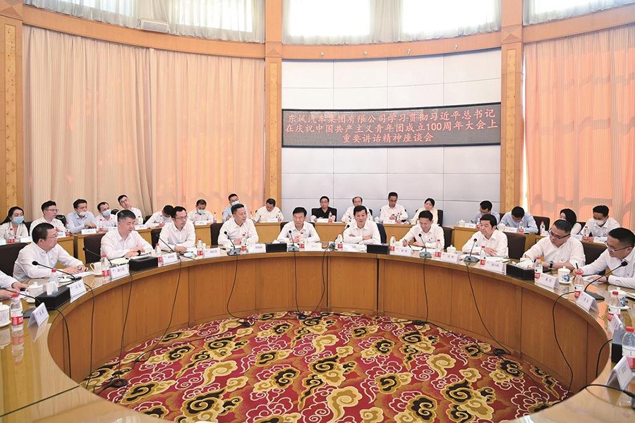 5月23日,东风汽车集团有限公司学习贯彻习近平总书记在庆祝中国共产主义青年团成立100周年大会上的重要讲话精神座谈会在十堰基地召开,进一步推动学习贯彻习近平总书记重要讲话精神走深走实。公司董事长、党委书记竺延风出席会议并讲话强调,东风事业的接力棒终究要交给年轻一代,东风的未来也寄托在青年身上。把青年培养成合格的建设者和接班人,事关东风的前途命运。公司广大青年要深刻学习领会习近平总书记重要讲话精神,找寻东风建设的原点,重温东风人振兴中国汽车工业的初心,厚植家国情怀,传承马灯精神,刻苦攻坚,顽强拼搏,为建设“卓越科技企业”贡献青春智慧与力量。